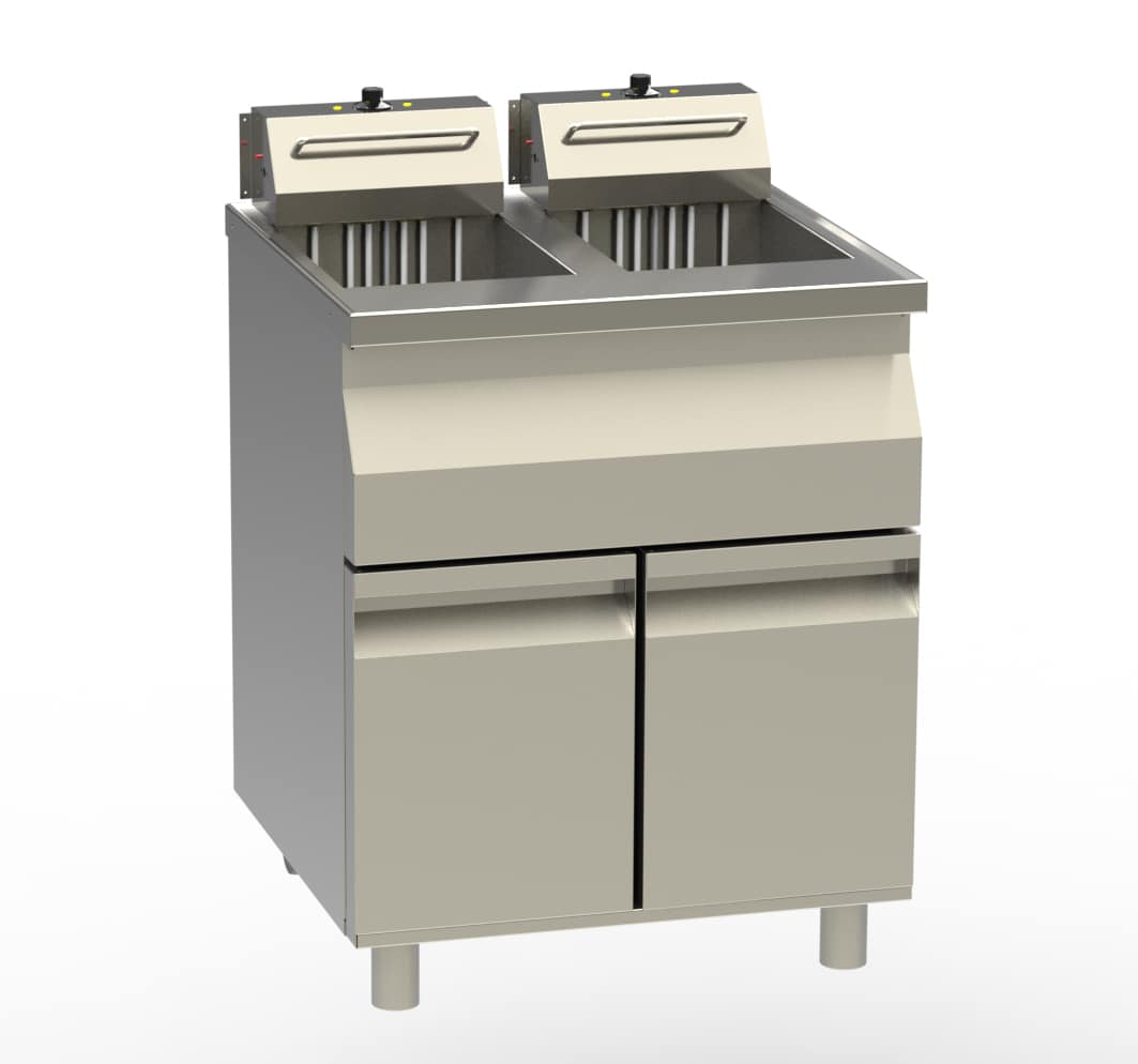 Vi har fundet Fki – Friture Manual Fka Double Floor fra Gastroudstyr hos Gastroudstyr i kategorien Koge Stege Fki Friture. De kraftige varmelegemer sørger for hurtig opvarmning af fritureolien, og du bestemmer selv, hvor varm den skal være. Den analoge friture er nem at gå til, du behøver ikke at programmere den først eller sætte dig ind i, hvad du skal trykke på for at start