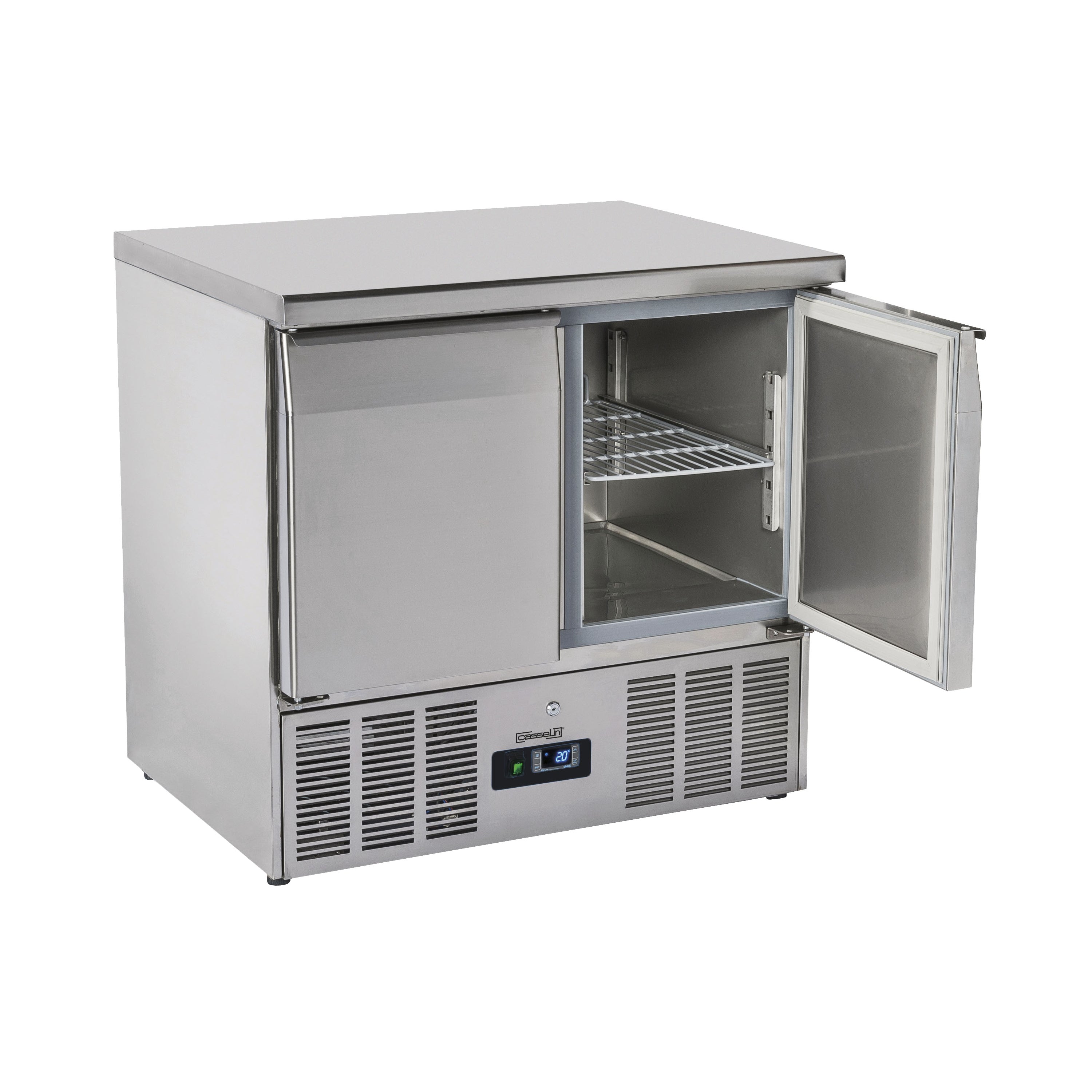 Vi har fundet Kølebord Låger fra Casselin hos Maxigastro.com i kategorien Professionelle Køle- Og Fryseprodukter Til Køkkener Og Restaurationsbranchen. Kølebord med 2 låger fra franske Casselin. Udført i rustfrit stål. Med digital termostat, selvlukkende døre og automatisk afrimning. – Rustfrit stål- Statisk køling- Automatisk kompressor cyklus afrimning- Digital termostat- Anti-kondens ramme- Dørlås med
