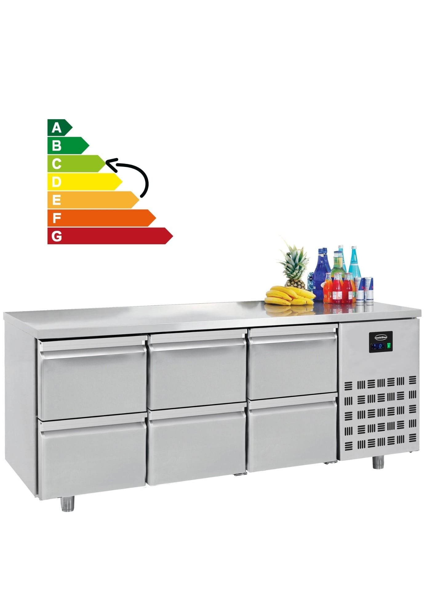 Vi har fundet Kølebord – Skuffer – Mm – Energy Line fra Combisteel hos Maxigastro.com i kategorien Professionelle Køle- Og Fryseprodukter Til Køkkener Og Restaurationsbranchen. Kølebord med 6 skuffer – 700 mm i Energy Line serien der udmærker sig ved at lavt energiforbrug – de fleste køleborde i denne størrelse har energimærke E – dette kølebord har energimærke C. Type af køling: Ventileret Antal skuffer: 6Støjniveau (dB): 40 Af