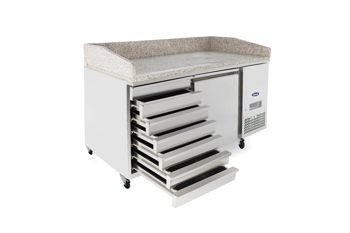 Vi har fundet Pizzadisk – Skuffer Og Låge – Granitbordplade fra Atosa hos Maxigastro.com i kategorien All Products. Pizzadisk i rustfri stål med 7 skuffer og 1 låge og granitbordplade. Sidemonteret kompressor. Selvlukkende dør og magnetiske dørtætninger. Leveres med hjul.⢠Granitplade⢠Indvendig og udvendig beklædning i rustfrit stål⢠Kølemiddel R290 / R600a⢠S